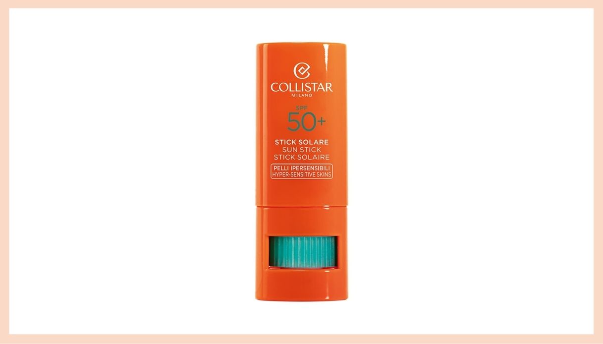 Non è un balsamo labbra, ma uno stick multiuso il Collistar Stick Solare SPF50+ per pelli ipersensibili. Dalla texture trasparente, è l’ideale per proteggere i punti più sensibili ed esposti al sole come appunto labbra, naso, contorno occhi, tatuaggi, cicatrici, macchie, orecchie e nei, senza però lasciare un alone bianco, si assorbe subito e non lascia alcuna traccia. È testato dermatologicamente, anche per il nickel.