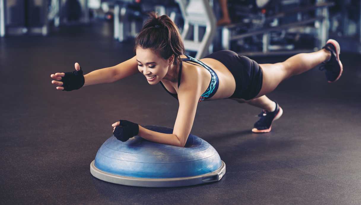 Vediamo insieme alcuni esercizi classici che si svolgono con il Bosu e permettono di allenare e tonificare gambe, glutei, braccia o addome: