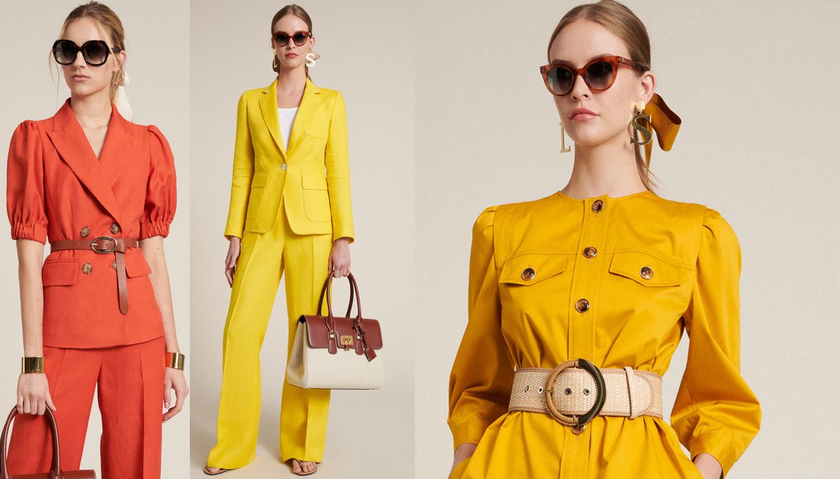 Pantaloni fluidi e ampi, giacche super femminili con maniche protagoniste e colori vitaminici per i tailleur perfetti per la città, l’ufficio, ma anche per un aperitivo o una giornata di shopping in centro.