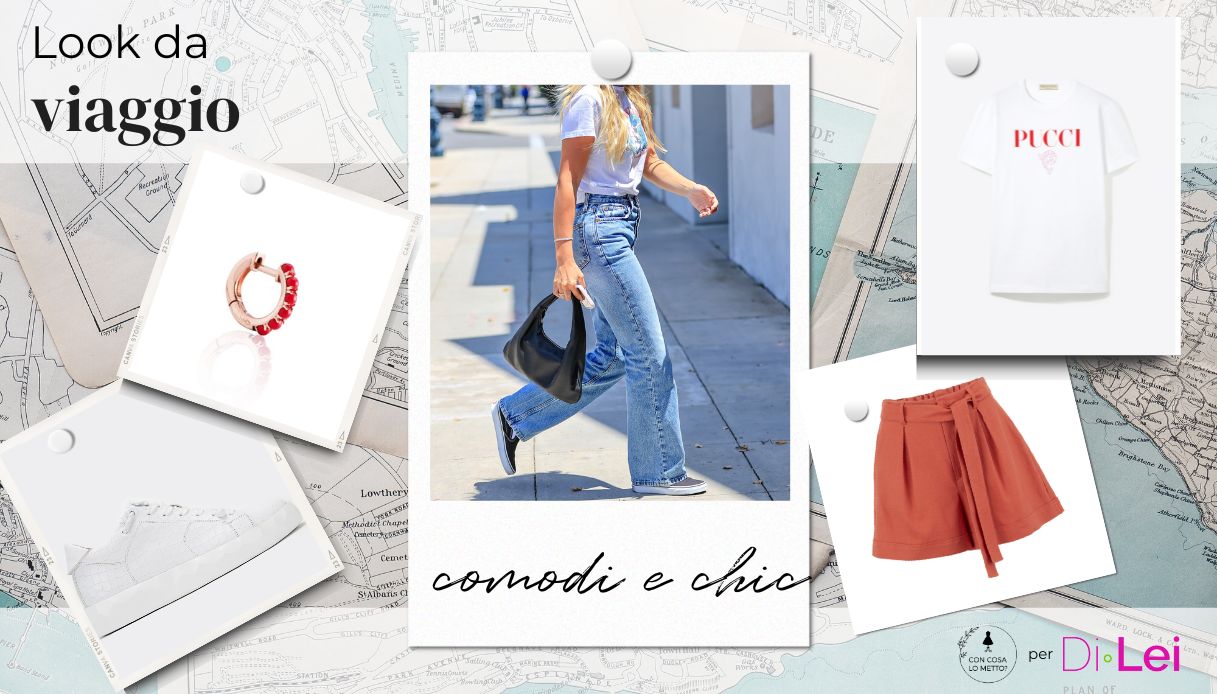 Jeans e t-shirt sono forse il mix più comodo e facile che esista, a patto che i vostri jeans abbiano per voi la stessa comodità dei pantaloni di un pigiama, quindi devono essere morbidi e confortevoli. Soprattutto se andate per aeroporti, le scarpe chiuse e le spalle coperte sono l’ideale per essere al riparo dall’aria condizionata fastidiosa (anzi, consiglio un foulard da tenere in borsa e usare in caso di necessità). Per completare il tutto, una bella borsa capiente se potete portare il bagaglio a mano, o in alternativa una pochettina con l’indispensabile se dovete caricare tutto in stiva.