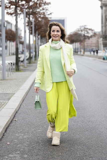Verde acido in versione total look casual