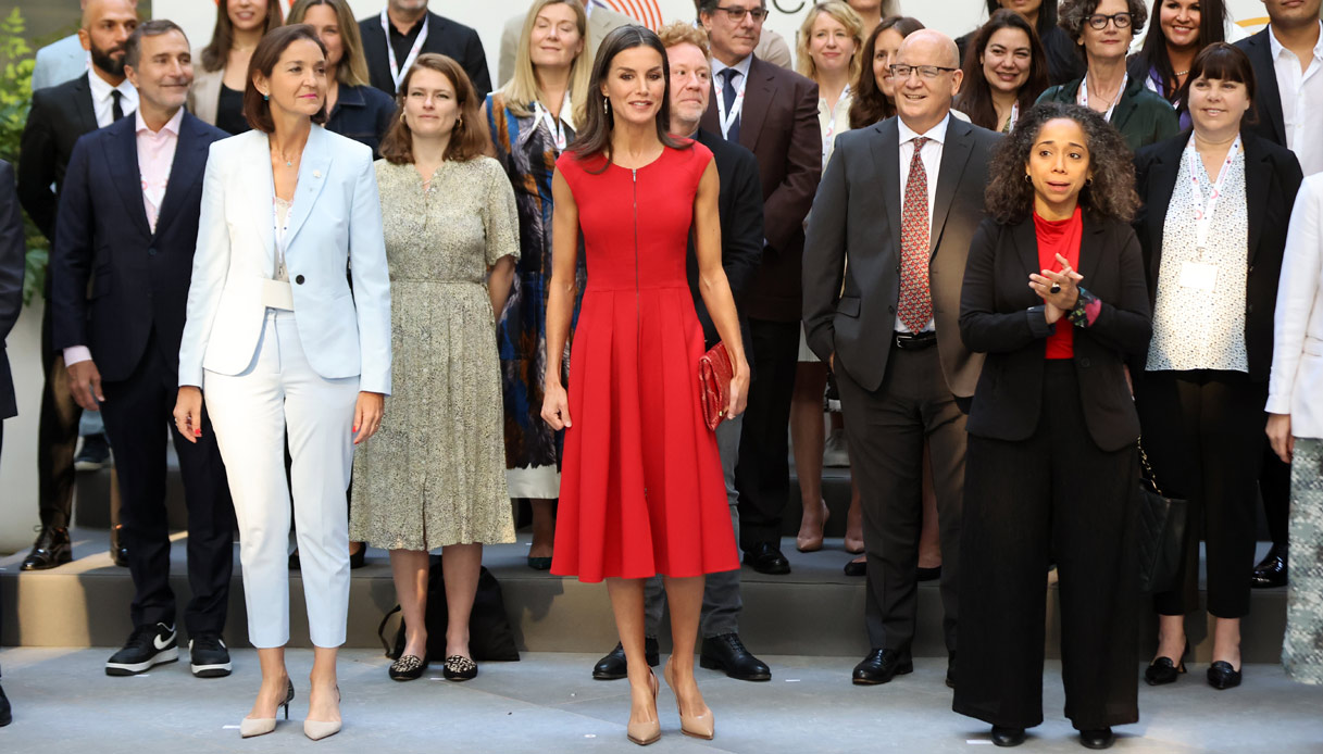 Per il nuovo appuntamento, Letizia ha cambiato stile e ha scelto un outfit “più patriottico” come lo ha definito il magazine Vanitatis. Infatti, il rosso, non solo è il colore della Reina ma anche della Spagna. Di solito, la moglie di Felipe lo indossa quando deve promuovere le eccellenze sportive del suo Paese, dunque lo ha considerato perfetto per l’evento che la porta a sottolineare l’impegno della Spagna nel settore audiovisivo.