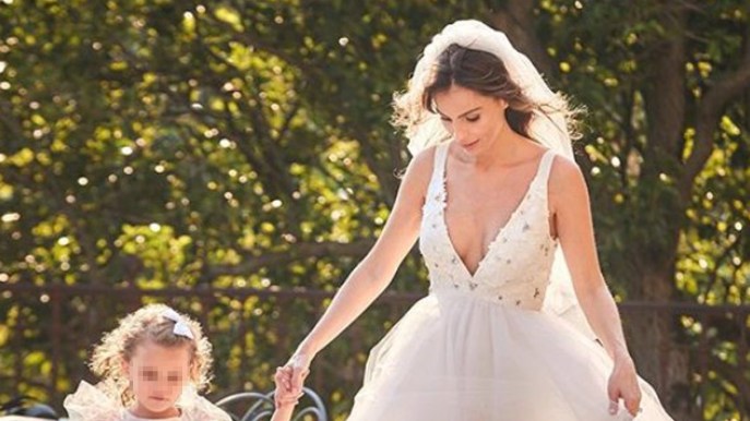 Francesco Facchinetti e Wilma Faissol sono entrambi vestiti di bianco. Lei è splendida con l’abito da sposa romantico: ampia gonna in tulle, corpetto ricamato dalla scollatura vertiginosa e velo. Lui è innamoratissimo e si presenta alla sua dolce metà con un completo candido, scarpe comprese. Leone e Lavinia sono gli altri protagonisti della giornata, anche loro vestiti di bianco, sono il paggetto e la damigella di mamma e papà.